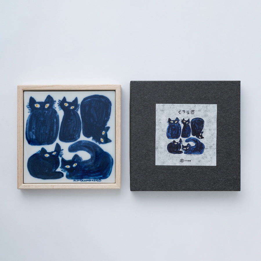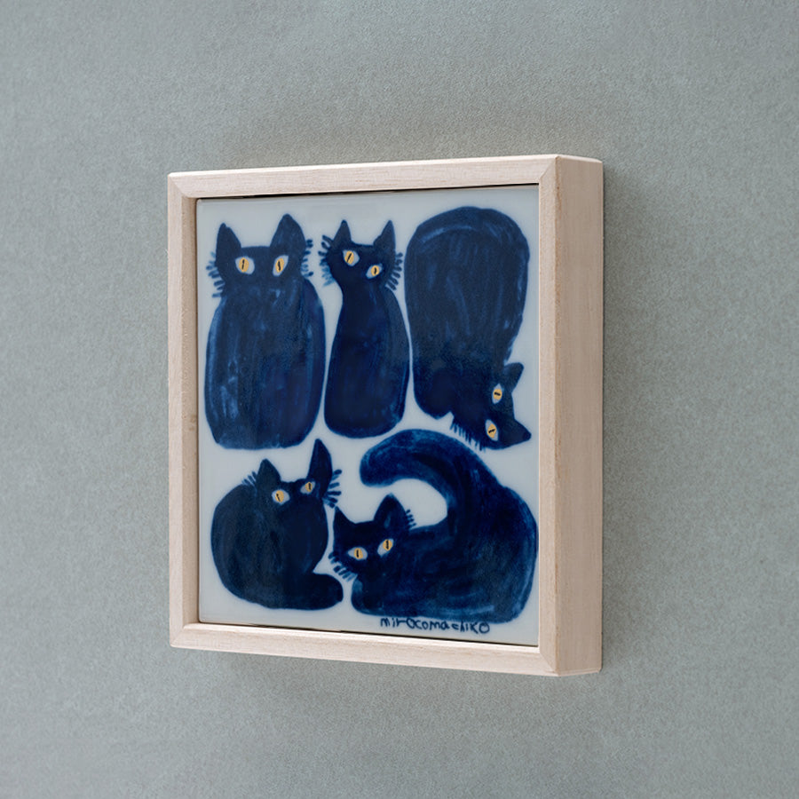 ミロコマチコ 瀬戸焼タイル「くろ5匹」(額入)