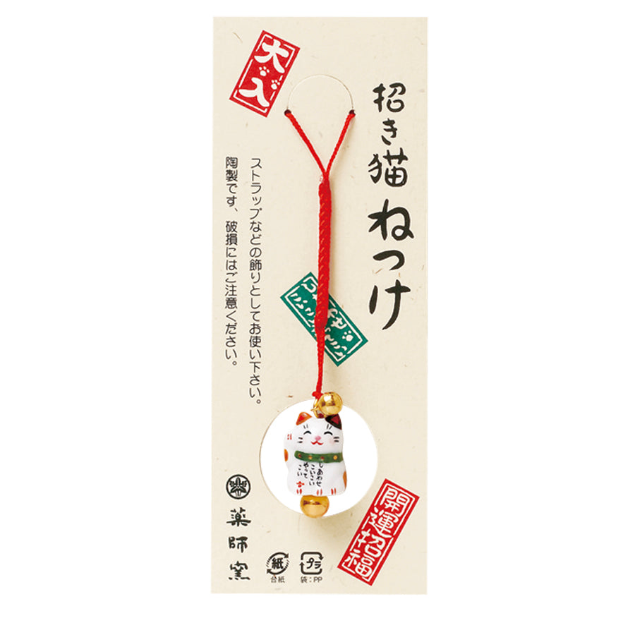 一般的に招き猫の右手は「お金」を招き、左手は「多くの人」、両手はその「両方」を招くと言われていますが、薬師窯の招き猫は、右手、左手にかかわらず、どの招き猫も薬師如来のご加護で「健康長寿」を招くと多くの皆様に人気です。