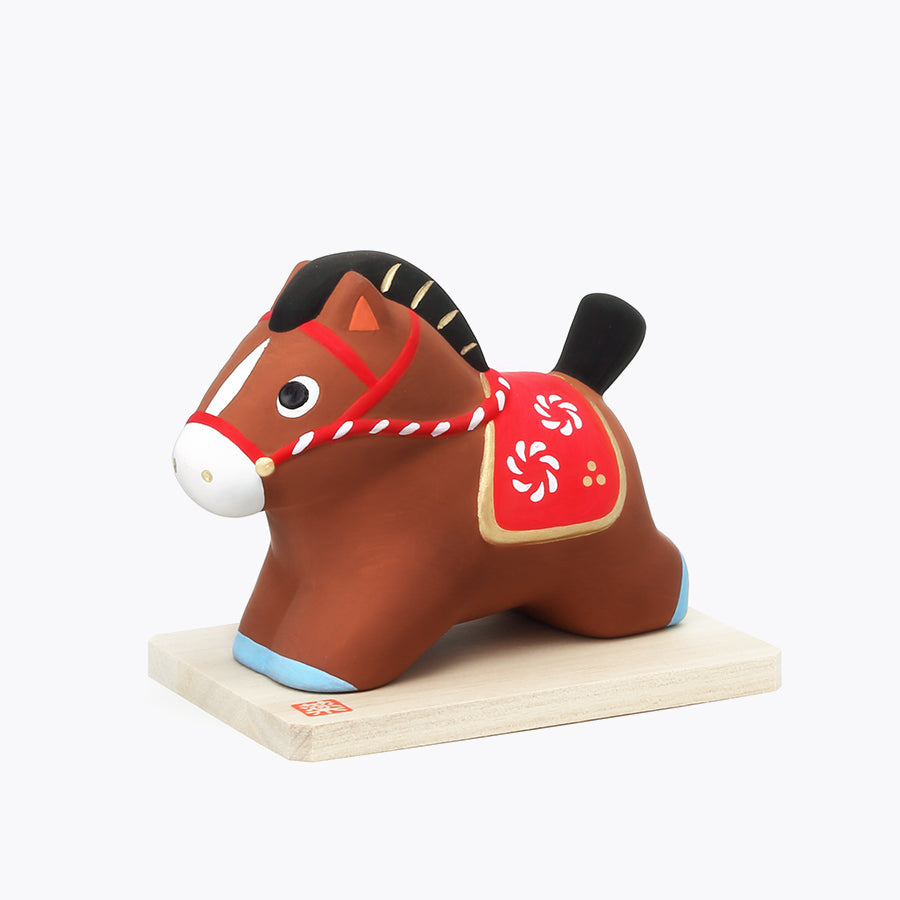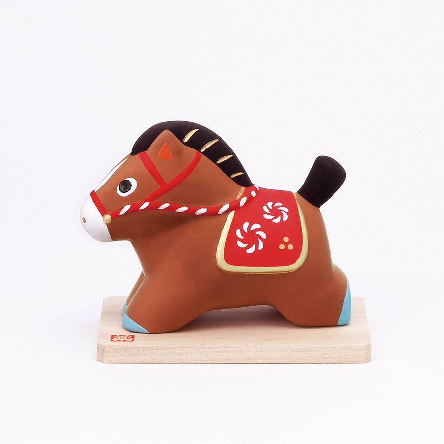 古来より午(馬)は生後すぐに走り出すことから、立身出世や幸運を招く動物として人々から尊ばれてきました。どんな道も恐れず駆け抜ける姿は、苦難を乗り越える力強さを感じさせ、発展と向上の1年となるようにとの願いが込められています。