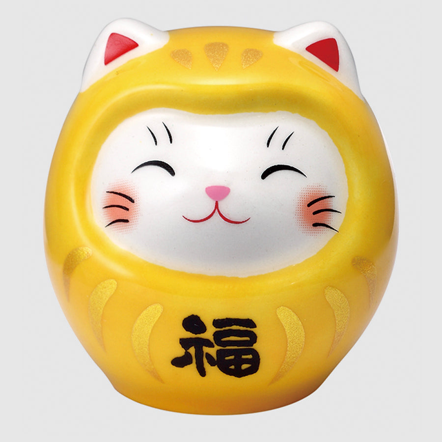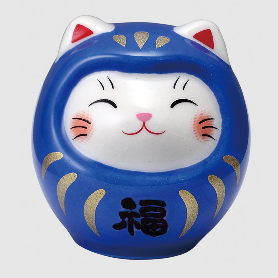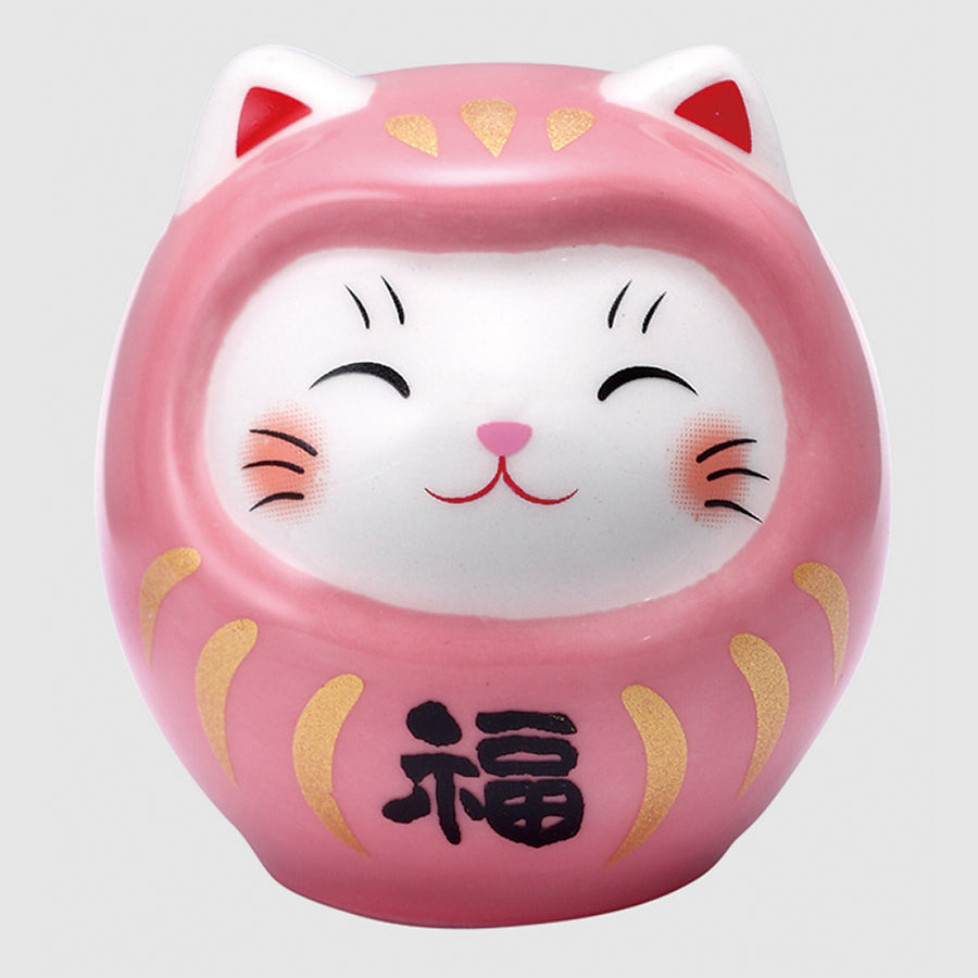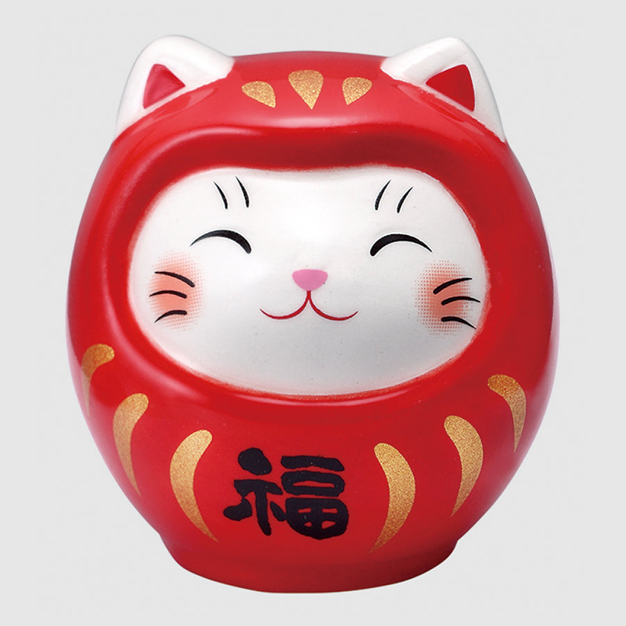古くから「だるま」には魔除けや疫病除けのご利益があるといわれてきました。また、その形状から「七転び八起き」「不撓不屈」の意味にも例えられ、今は招き猫と同じく、縁起物として親しまれています。「開運猫だるま」は、だるまの姿になった招き猫が手を上げていなくても、だるまのご利益を借りて「福」を招くというもの。王道の赤色のほか、合格祝いに贈りたい桜模様のピンクなど、カラーバリエーションも豊富に揃っています。