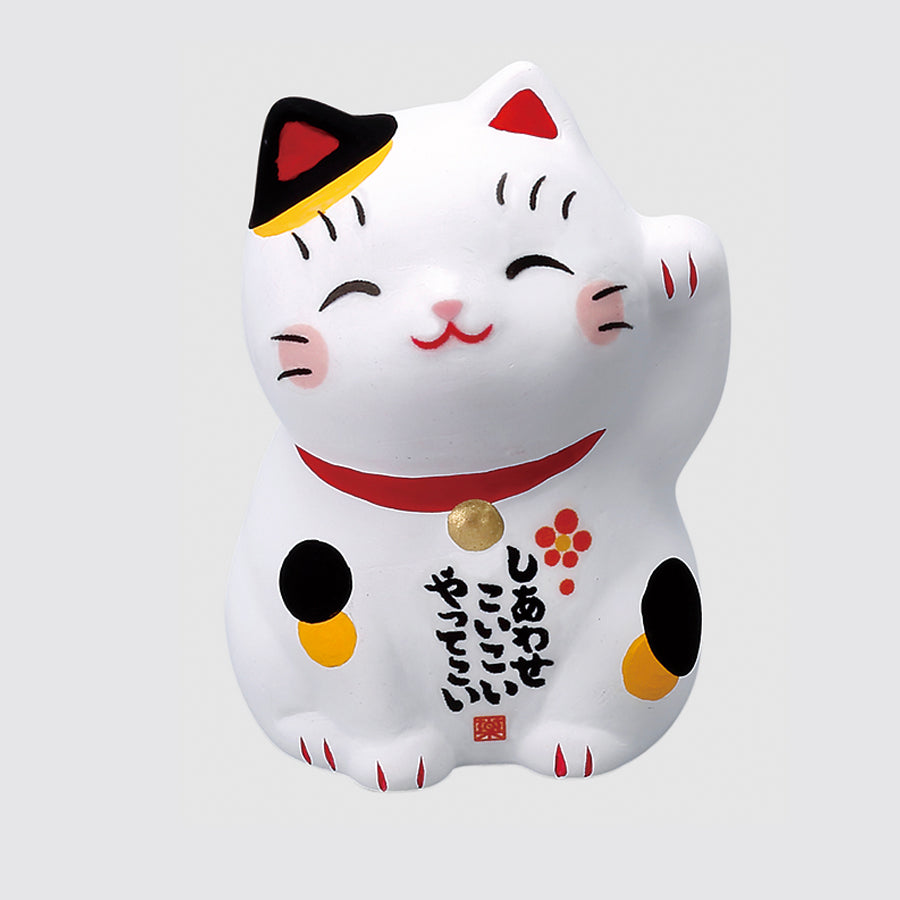 一般的に招き猫の右手は「お金」を招き、左手は「多くの人」、両手はその「両方」を招くと言われていますが、薬師窯の招き猫は、右手、左手にかかわらず、どの招き猫も薬師如来のご加護で「健康長寿」を招くと多くの皆様に人気です。