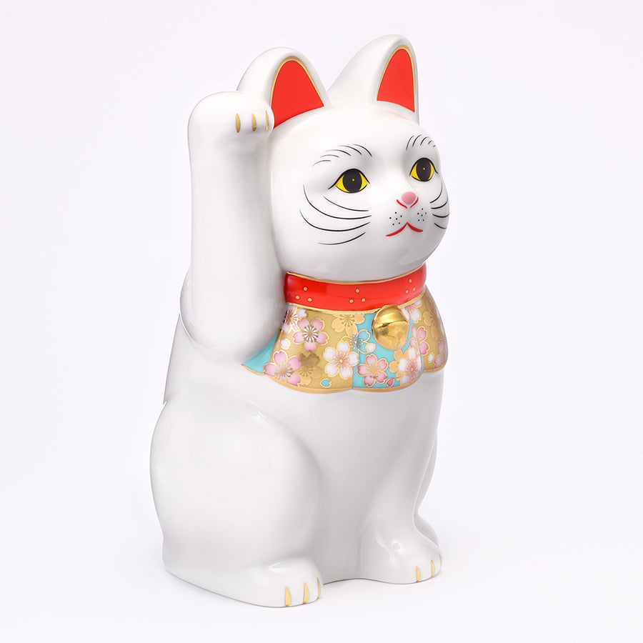 一般的に招き猫の右手は「お金」を招き、左手は「多くの人」、両手はその「両方」を招くと言われていますが、薬師窯の招き猫は、右手、左手にかかわらず、どの招き猫も薬師如来のご加護で「健康長寿」を招くと多くの皆様に人気です。