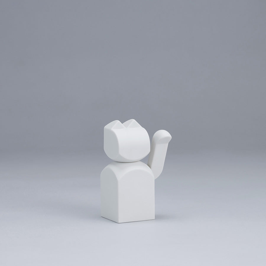 頭と胴体、腕にマグネットを装着することにより、願いやお好みにあわせて各部位を簡単に組み換えることができる招き猫です。