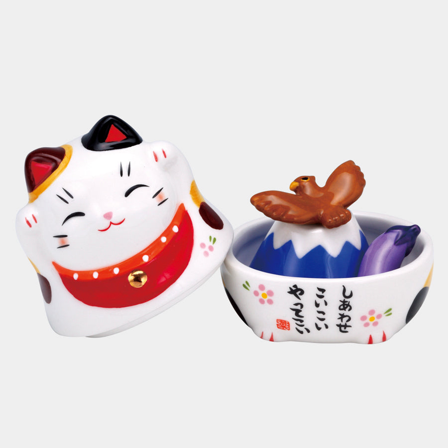 彩絵福夢箸置きセット(招き猫小物入れ付)