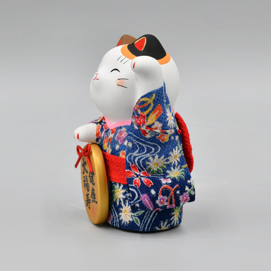 江戸時代から日本の着物の素材として愛されてきた「ちりめん」は、細やかな「しぼ」と呼ばれる凹凸が特徴の織物です。伝統柄はもちろん、「薬師窯(やくしがま)」オリジナルの柄で美しいちりめんを纏った招き猫は、カラフルな色使いで周囲を華やかにするだけではなく、心をほっとさせる癒しの効果も。日本らしさが満載の招き猫は、海外の人たちにも人気が高く、お土産としてもとても喜ばれています。
