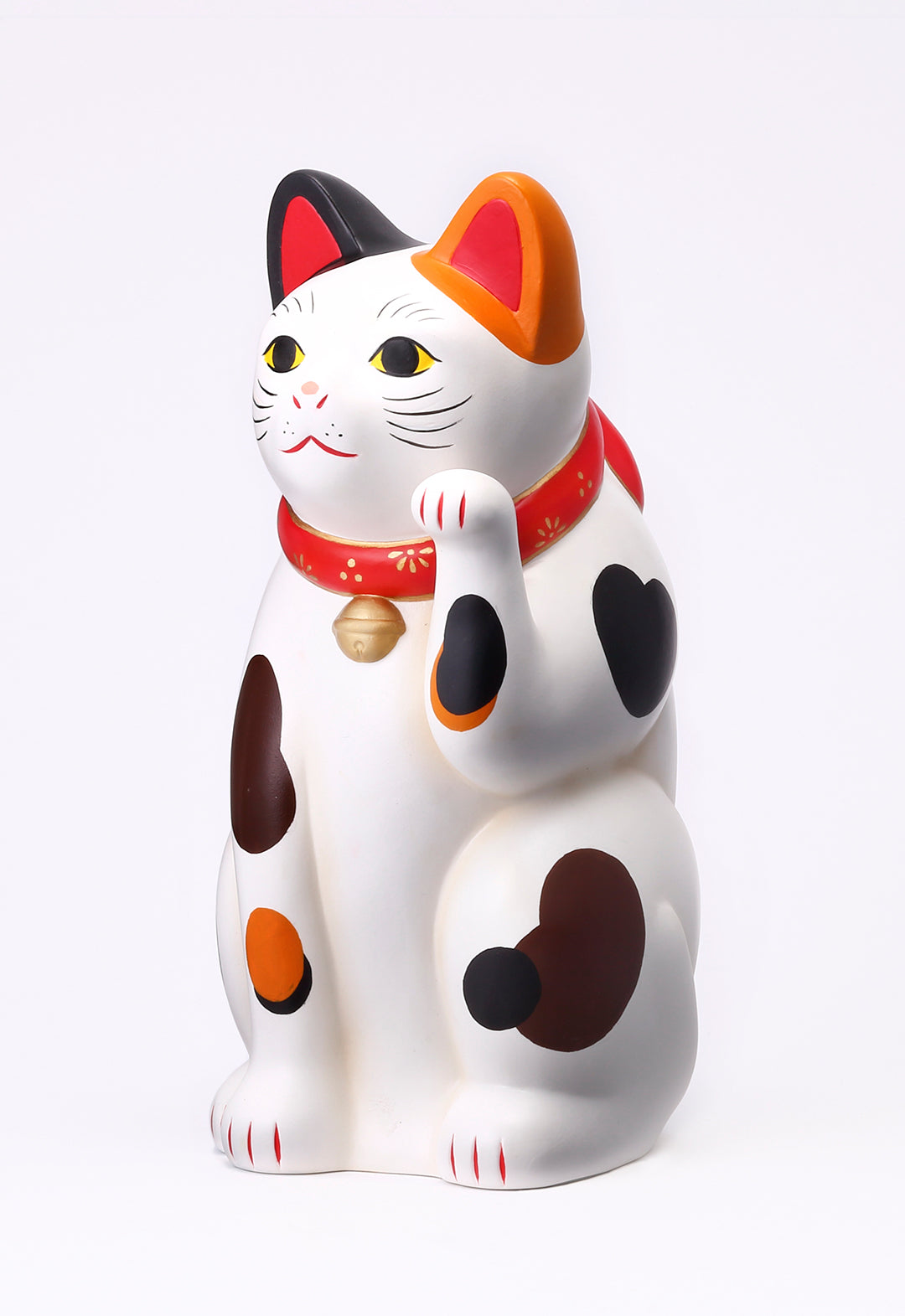 歌川国芳の浮世絵にも多くのミケ猫が描かれてきたように、昔から日本人の心を癒す招き猫の定番です。