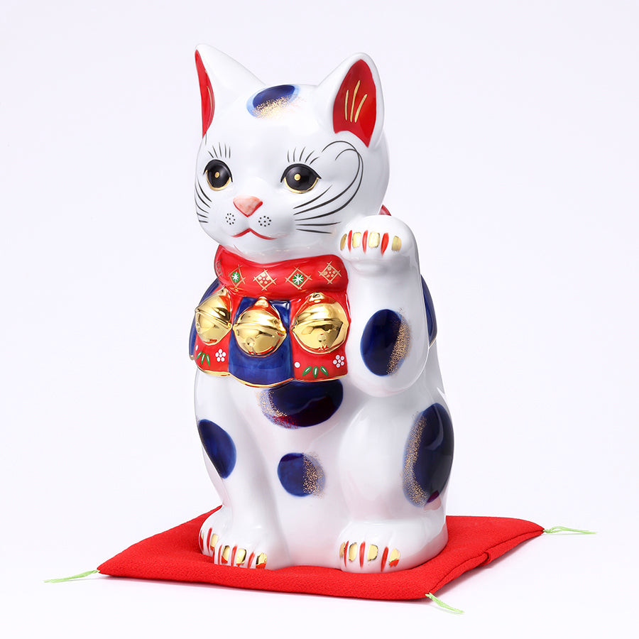 横を向いた大きな耳と3つの大きな鈴が特徴の招き猫です。この大きな耳は本物の猫が聞き耳を立てている姿をイメージしたもので、よい情報をたくさん収集してほしいという願いを込めて作りました。また大きな鈴は「鈴なりの福をもたらす」「たくさんの幸運をもたらす」などの意味を持ち、さらにパワーアップした縁起物となっています。本物の猫に近いリアルな表情は一つひとつ職人たちによる手描きです。猫好きの方への贈り物におすすめです。